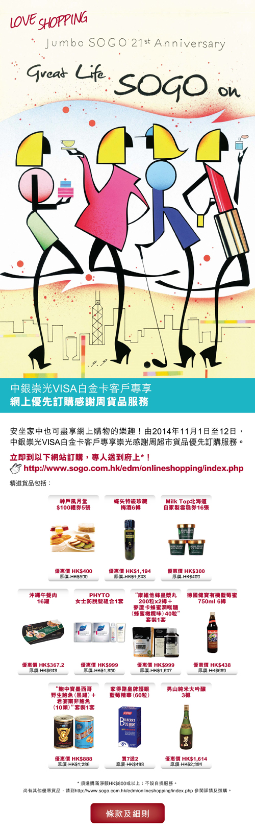 中銀崇光VISA白金卡客戶專享網上優先訂購崇光感謝周