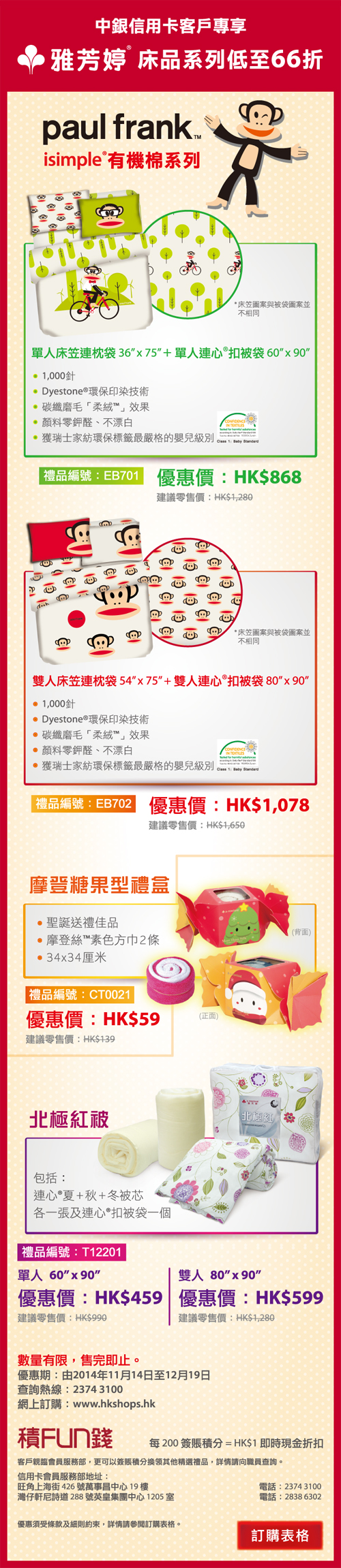 中銀信用卡客戶專享雅芳婷床品系列低至66折