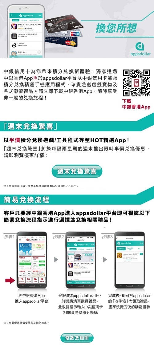 中银信用卡客户专享 appsdollar 精选礼品半价积分兑换优惠