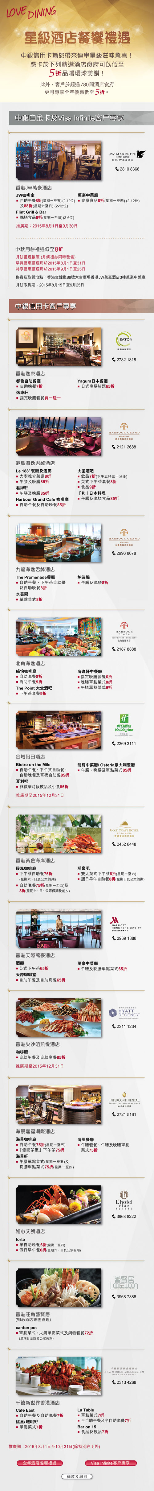 中銀信用卡客戶專享星級酒店餐饗禮遇低至5折
