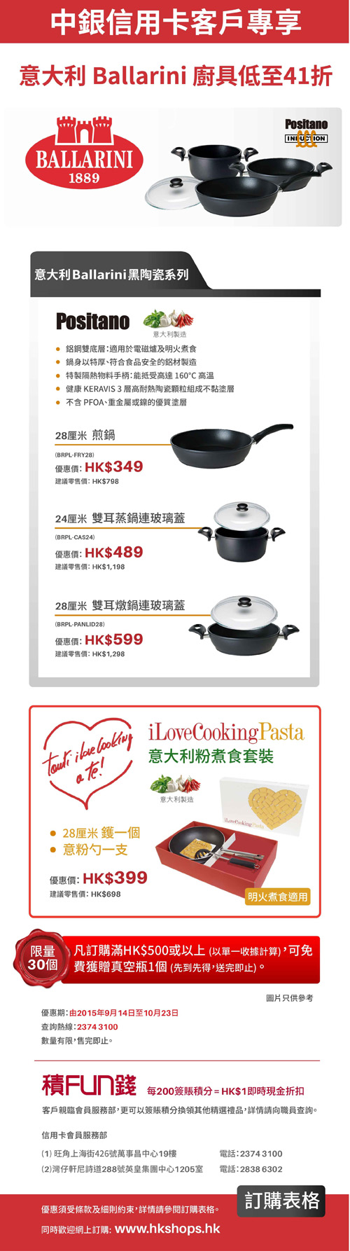 中銀信用卡客戶專享意大利Ballarini廚具低至41折