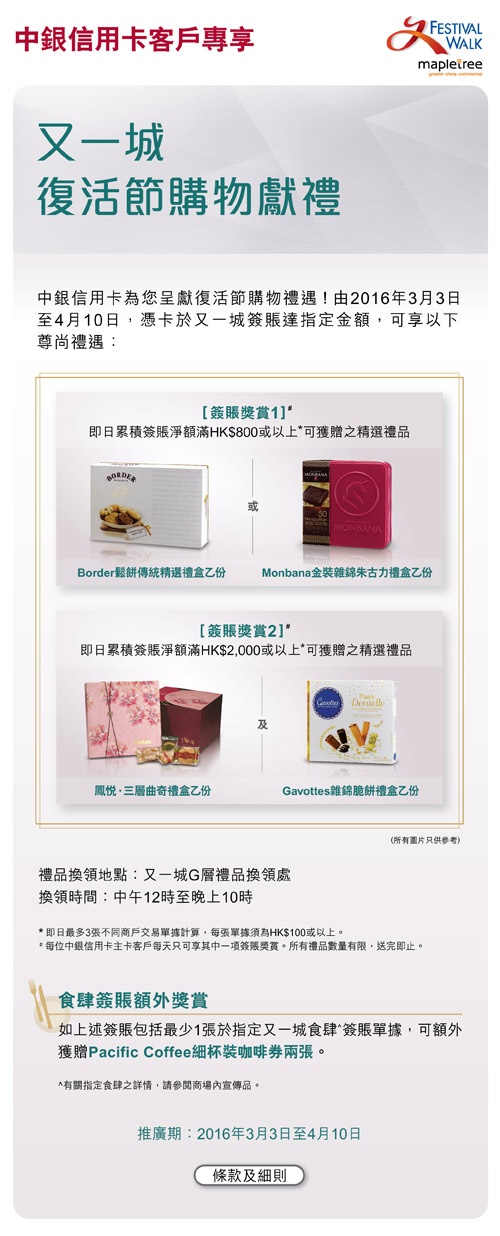 中銀信用卡客戶專享又一城復活節購物獻禮