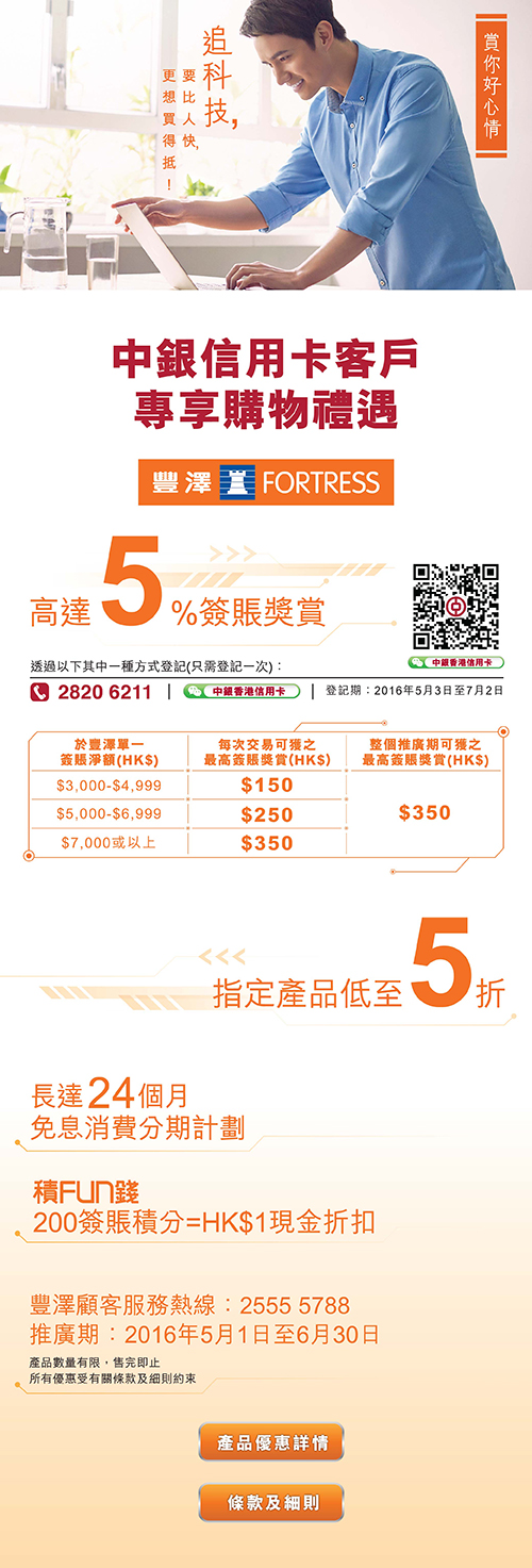 中銀信用卡客戶專享豐澤高達5%簽賬獎賞及指定產品低至5折
