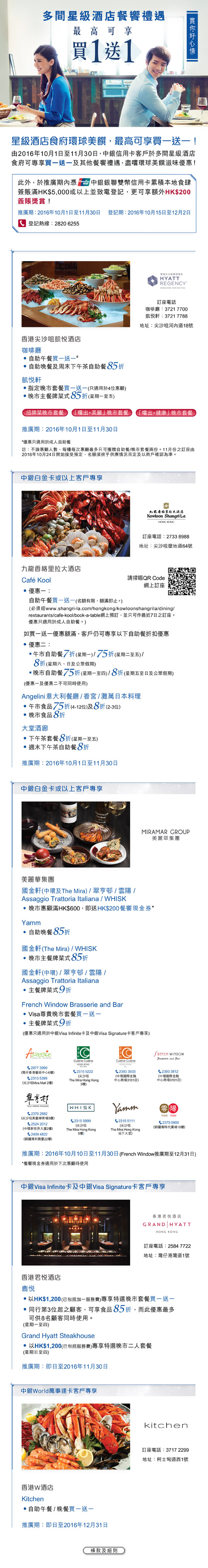 中銀信用卡客戶於多間星級酒店食府最高可享買一送一優惠