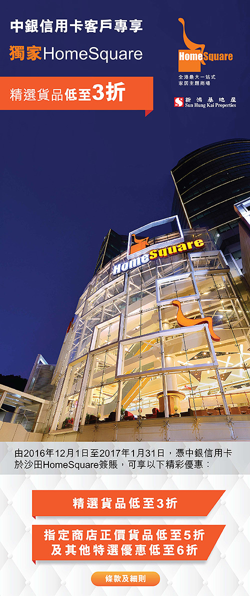 中銀信用卡客戶専享HomeSquare精選貨品低至3折