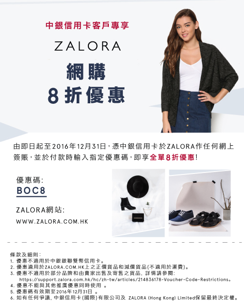 中銀信用卡客戶專享ZALORA網購8折優惠