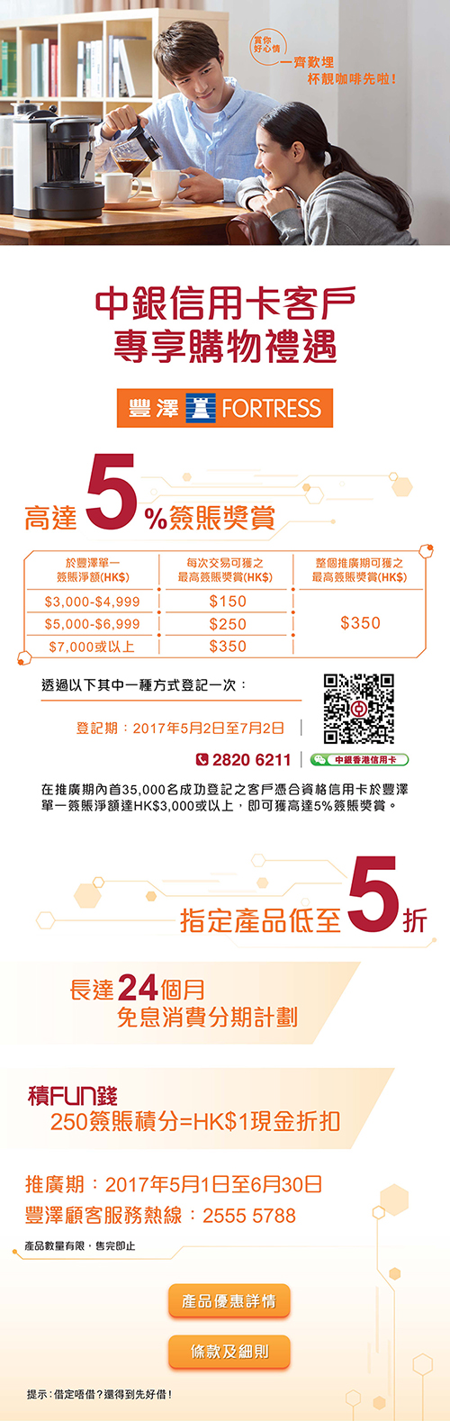 中銀信用卡客戶專享豐澤高達5%簽賬獎賞