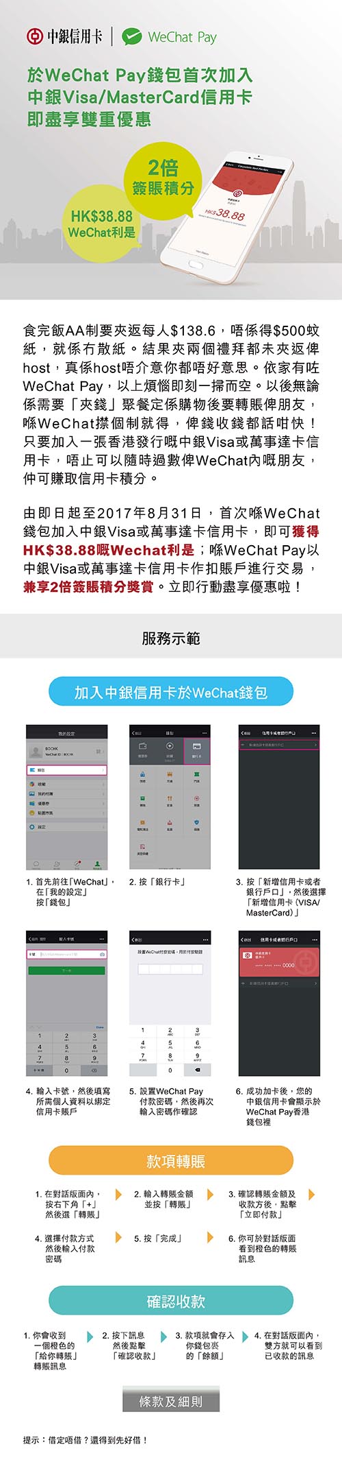 WeChat Pay加入中銀信用卡即可享獎賞