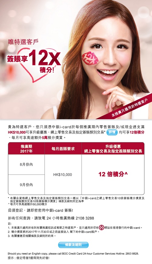 特選客戶憑中銀i-card簽賬專享12倍積分