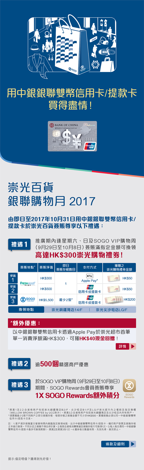 用中银银联双币信用卡/提款卡於崇光百货签账尊享特别礼遇