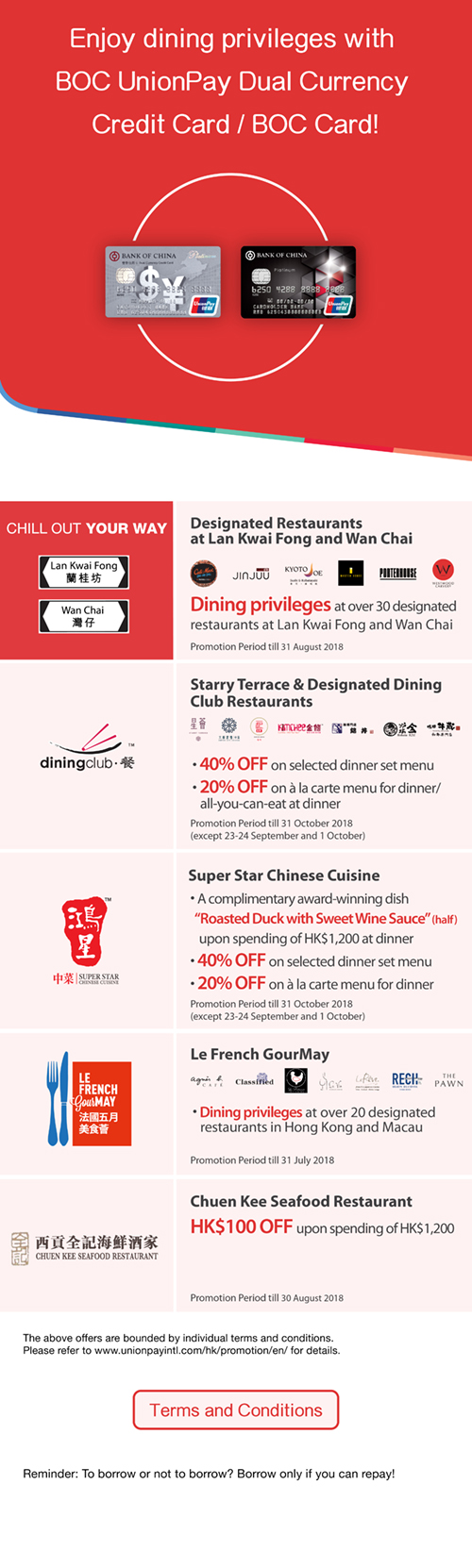 Enjoy dining privileges with BOC UnionPay Dual Currency