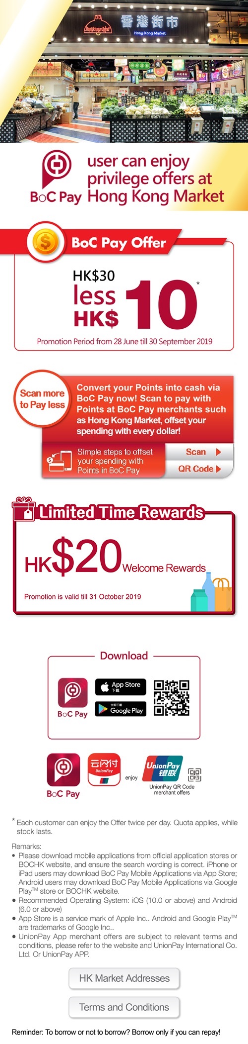 Use BoC Pay to enjoy privilege offers at Hong Kong Market
